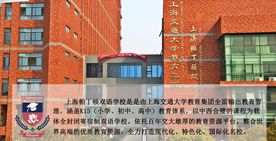 上海帕丁顿双语学校是由上海交通大学教育集团全面输出教育管理,涵盖K12(小学、初中、高中)教育体系,以中西合璧的课程为载体全封闭寄宿制双语学校。依托百年交大雄厚的教育资源平台,整合世界高端的优质教育资源,全力打造现代化、特色化、国际化名校。